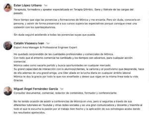 “¡Queremos otra!” es el comentario más habitual tras una charla motivacional de Mónica. Dos horas de alta calidad centradas en mejorar los conocimientos de tus empleados, su rendimiento y elevar su ánimo.