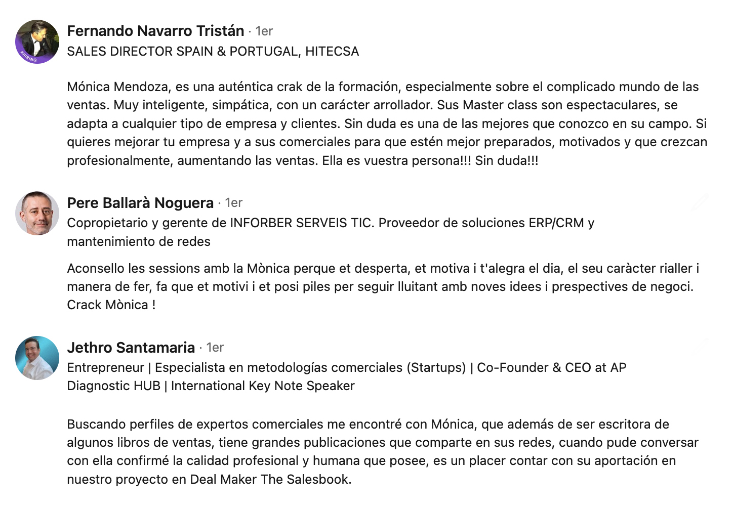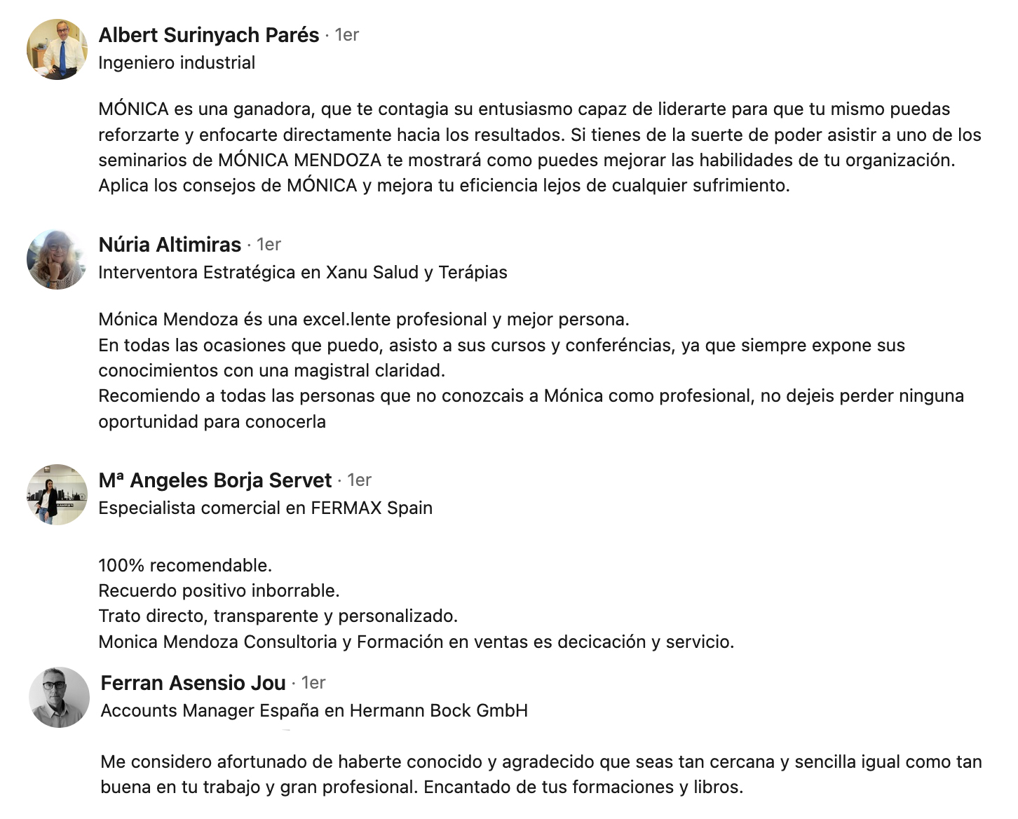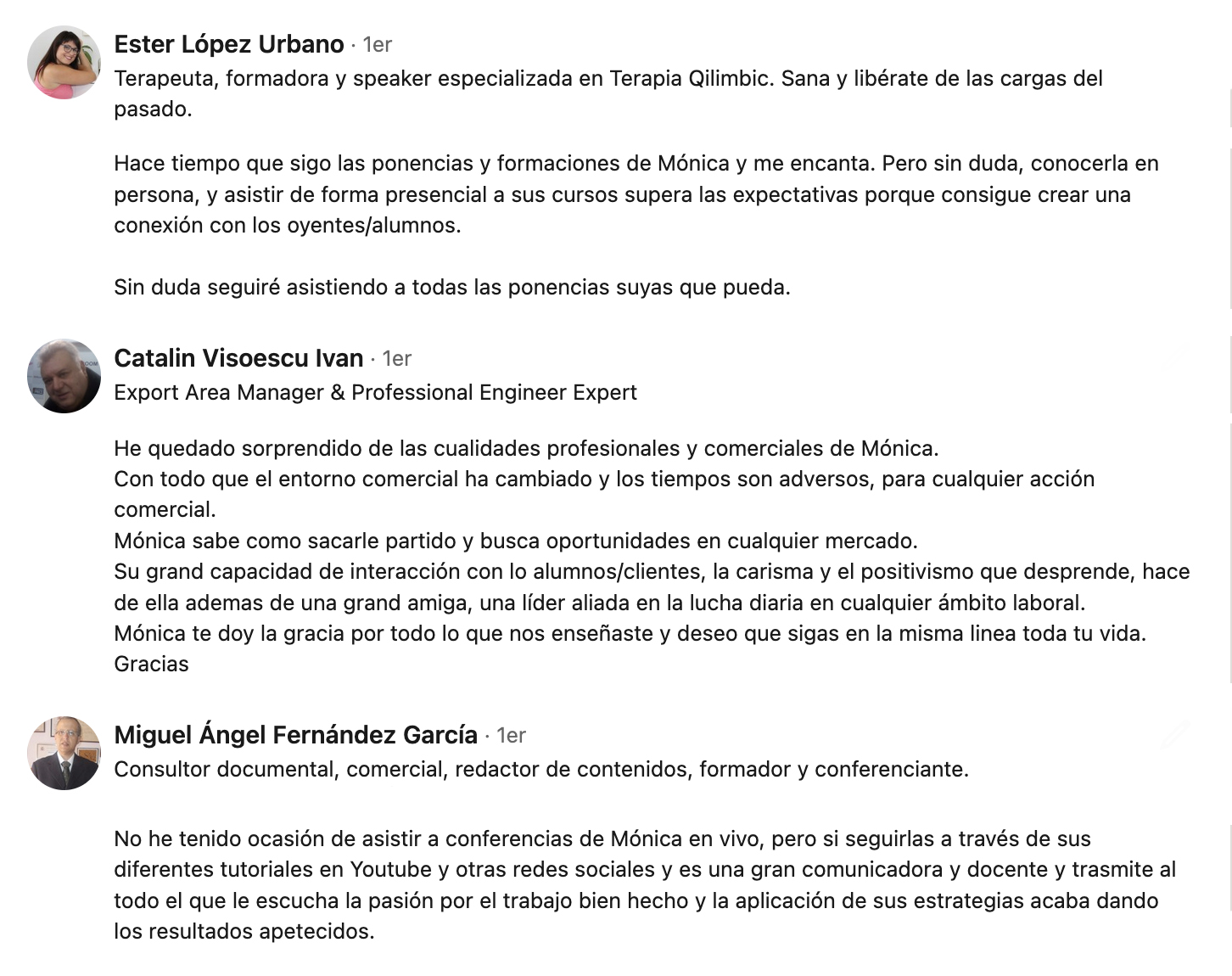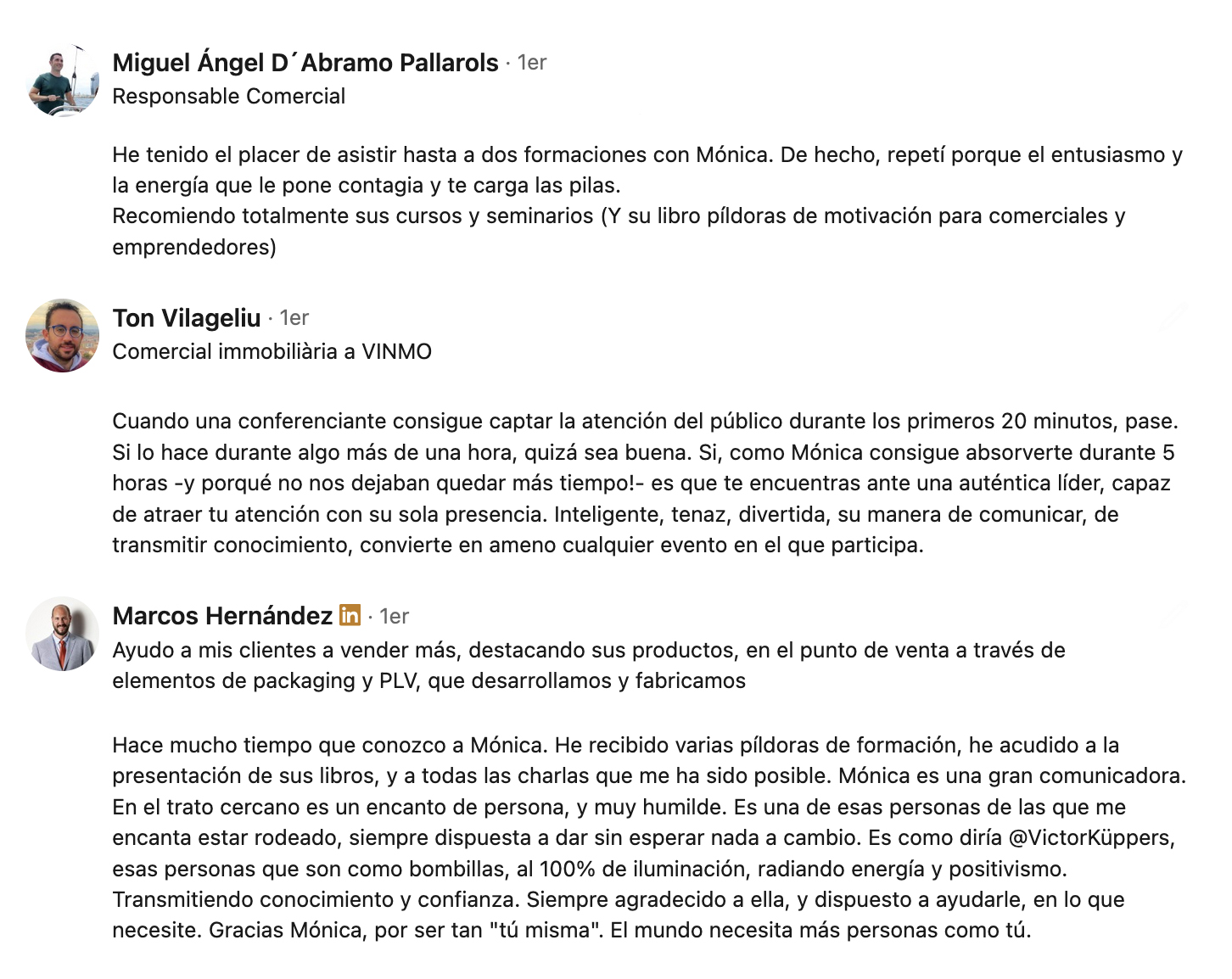 “¡Queremos otra!” es el comentario más habitual tras una charla motivacional de Mónica. Dos horas de alta calidad centradas en mejorar los conocimientos de tus empleados, su rendimiento y elevar su ánimo.